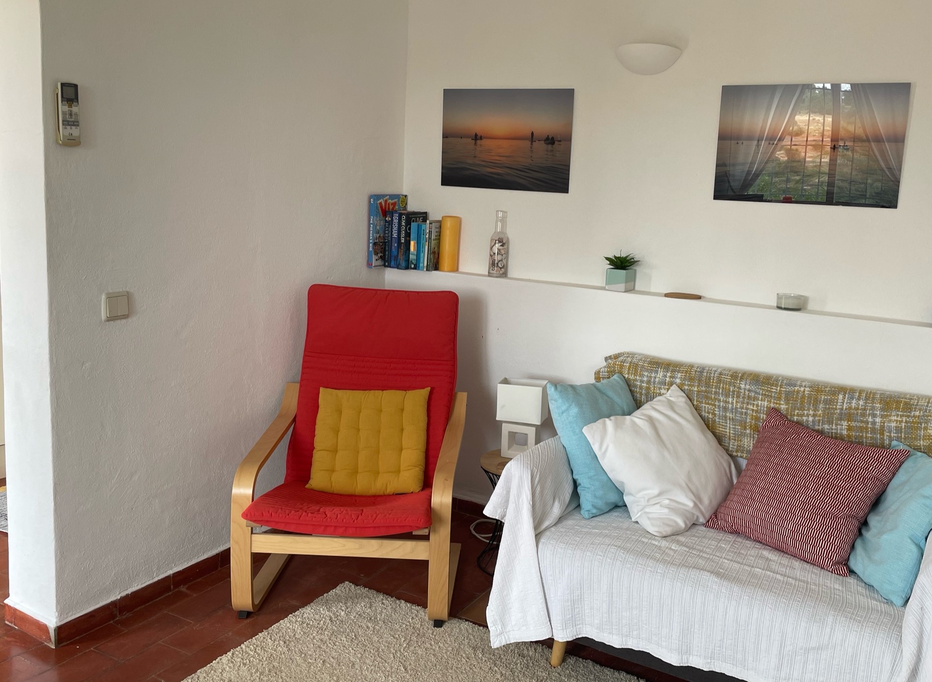 The sitting room has large patio doors onto a sun terrace with large built-in tiled seat, patio table and 4 chairs. Adequate shade is provided with a fully adjustable awning. The large roof-top terrace has both countryside and sea views where you can watch wonderful sunsets. There is a lockable side gate. In the sitting room, there are two comfortable sofas, dining table and chairs, coffee tables, standard lamp, TB, Ipod dock music, games and books.