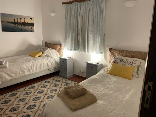 The main villa has two bedrooms, one with a new super king bed and the other with new twin beds, wardrobes, dressing table and hair drier. Towels and linen are provided. There is a wall safe in the main bedroom.