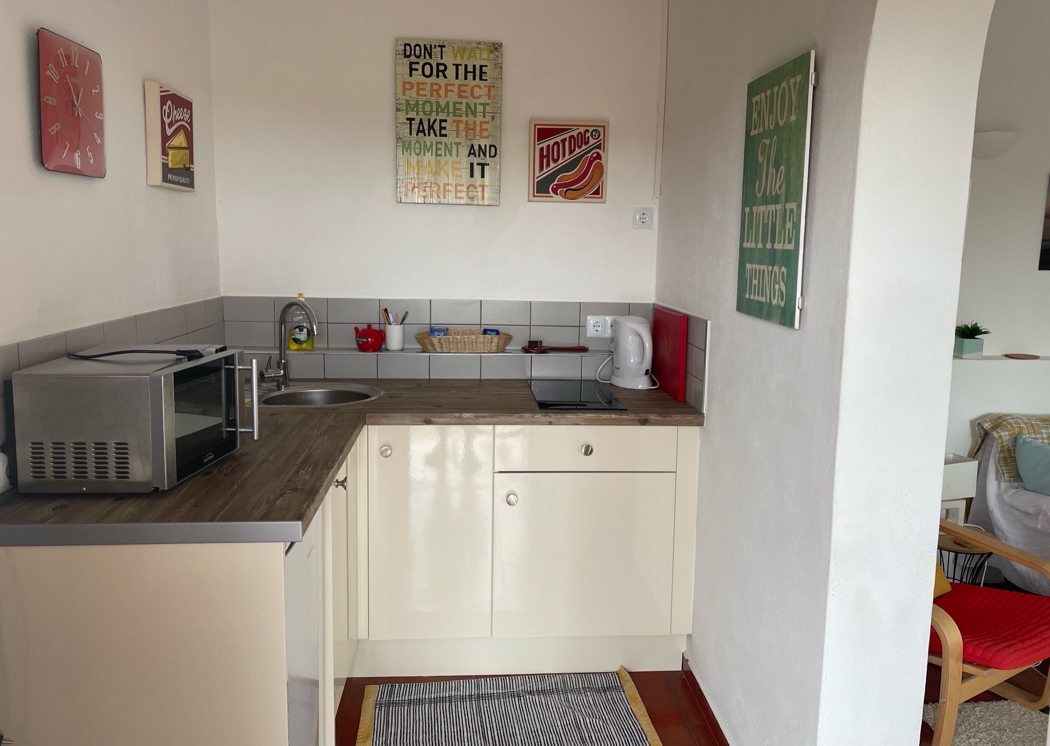 The Studio has joint access to a washing machine which is situated in its own outside enclosure near the kitchen door of Villa 4B.