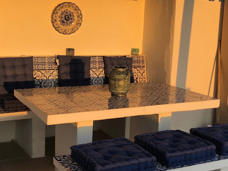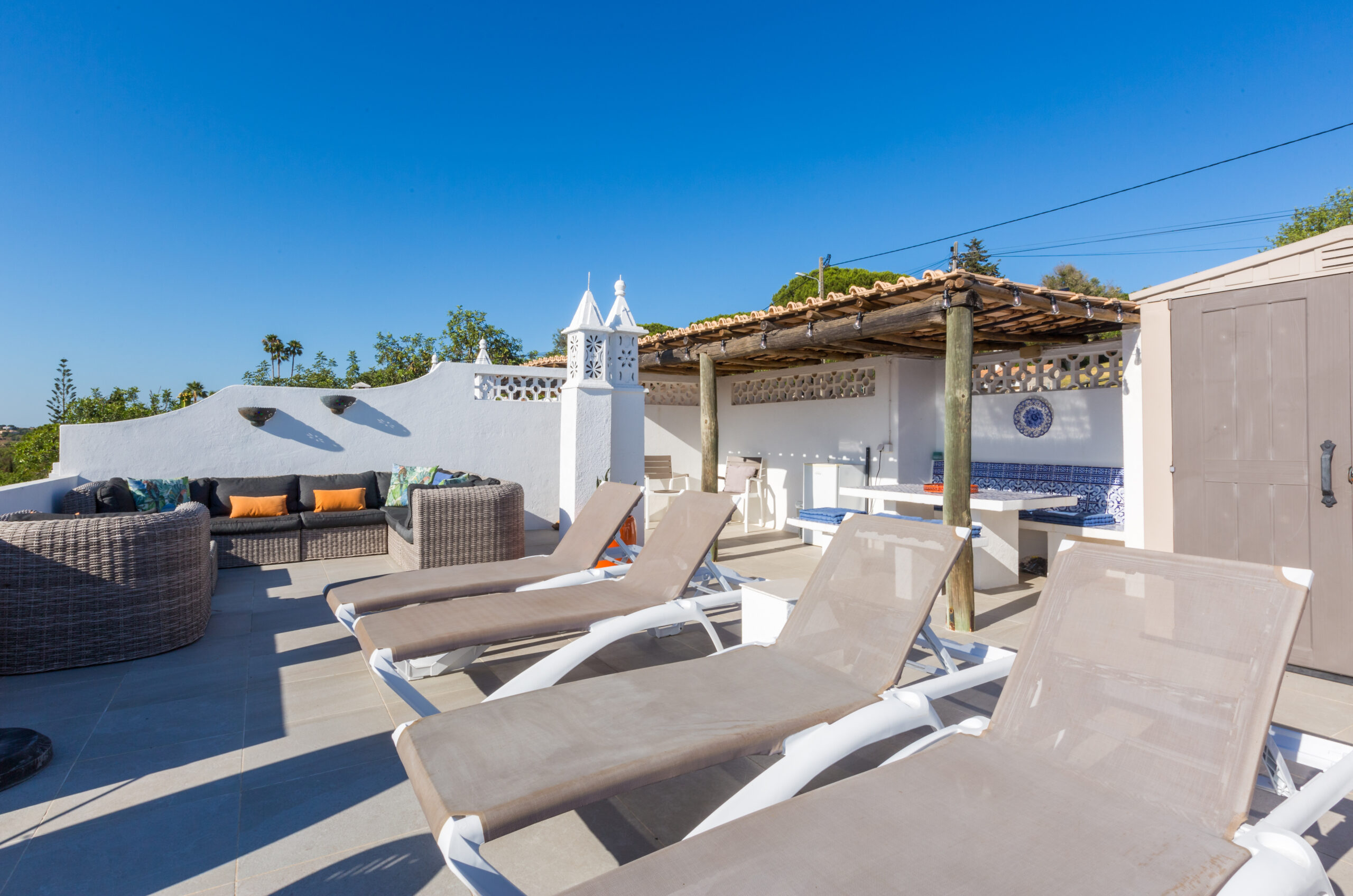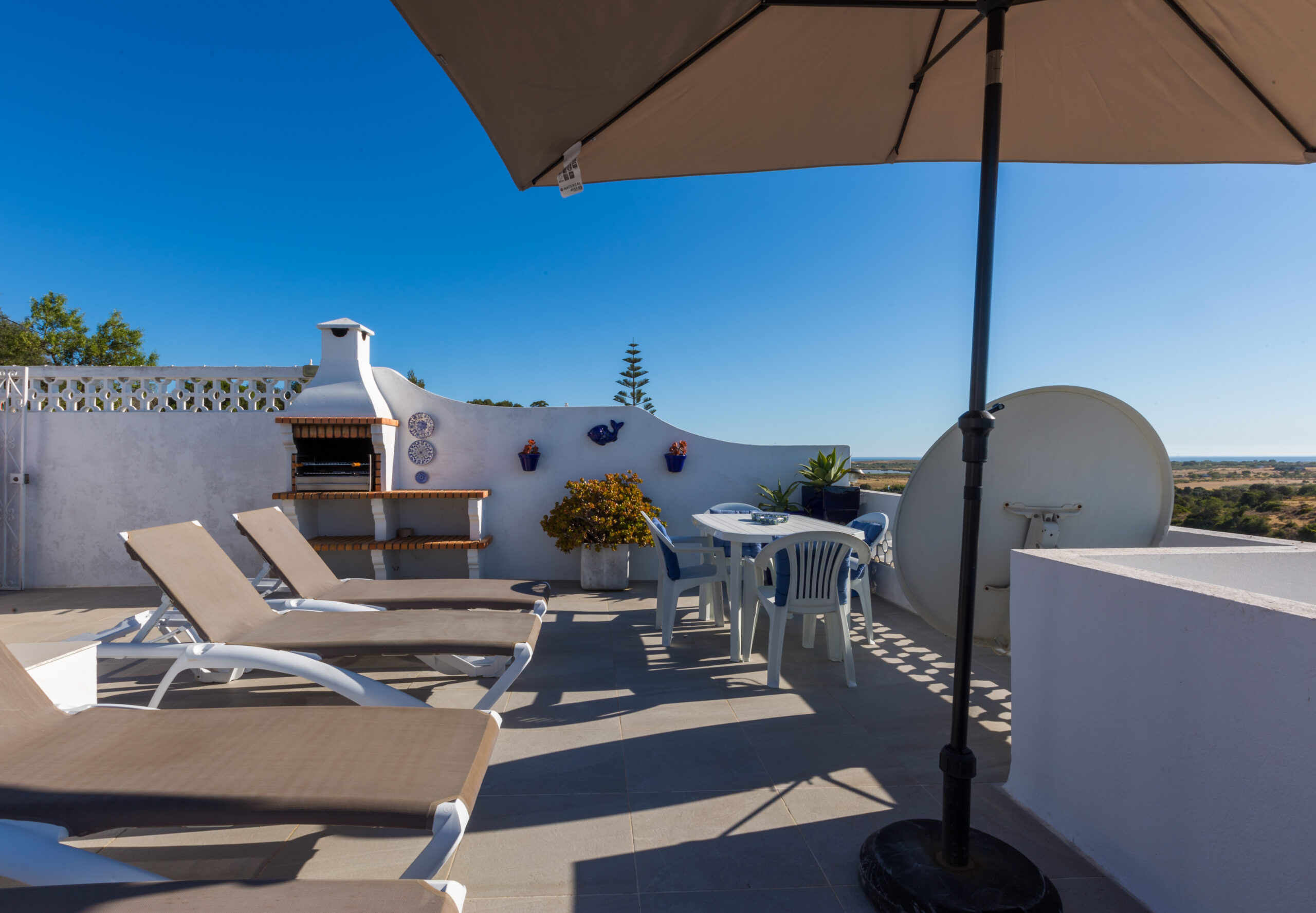 The (Casa Bela Vista) villa has a fantastic roof terrace. With a built-in barbecue and tiled dining table as well as sun loungers and a table and chairs, this is the place for lunch when you don’t want to interrupt your sun bathing. The view is magnificent, and was the reason the Villa was given its name. As the roof terrace is walled on three sides it is totally private and is, therefore, a haven of peace and tranquillity. There is a covered area to give some shade from the mid-day sun.