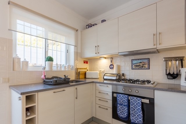 Refurbished in 2023, the Villa has new tiled floors throughout and a restful pastel decor. The accommodation comprises a spacious living room, two twin bedrooms, two bathrooms, a fully fitted kitchen, a large secluded balcony and a massive roof terrace.