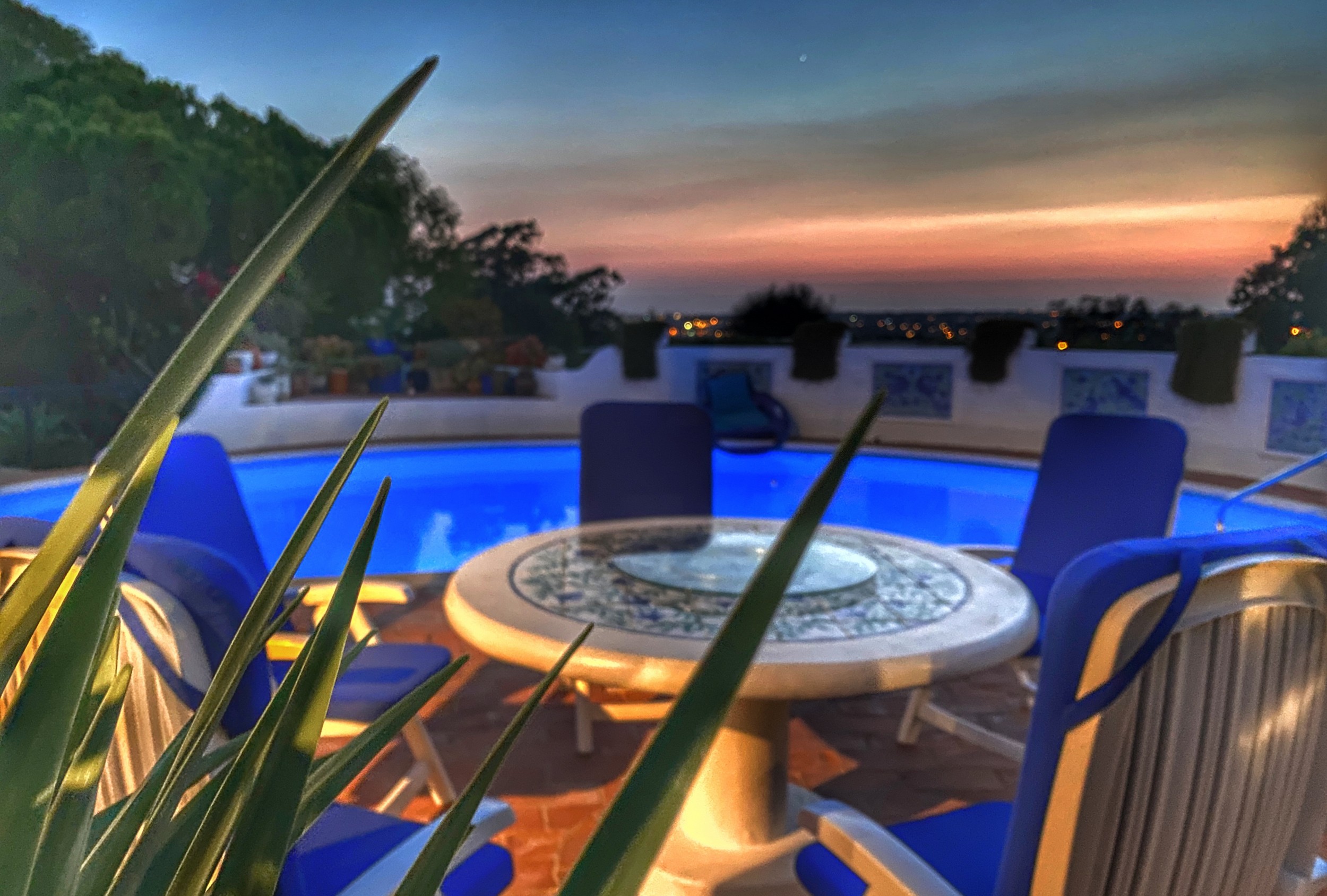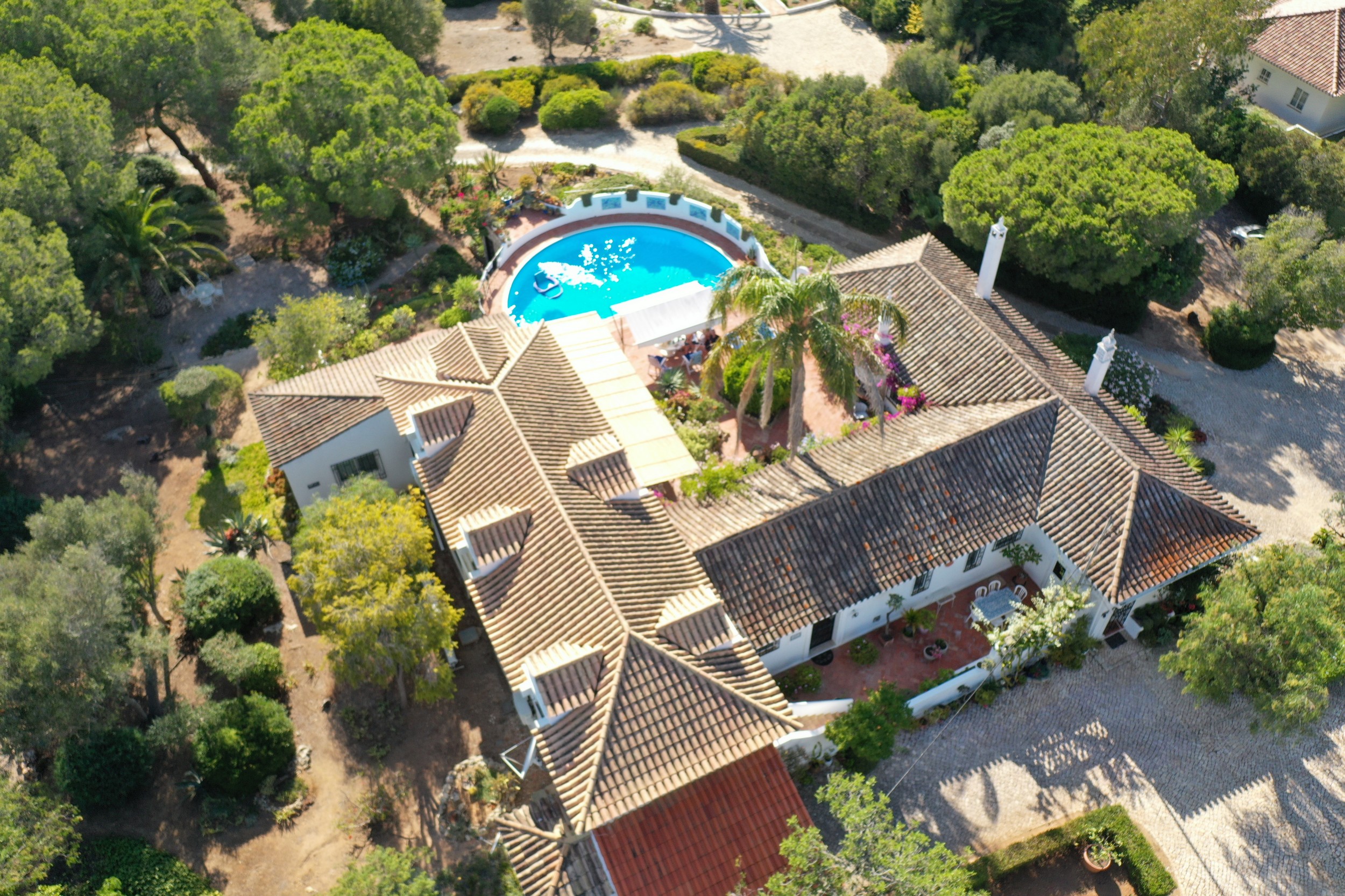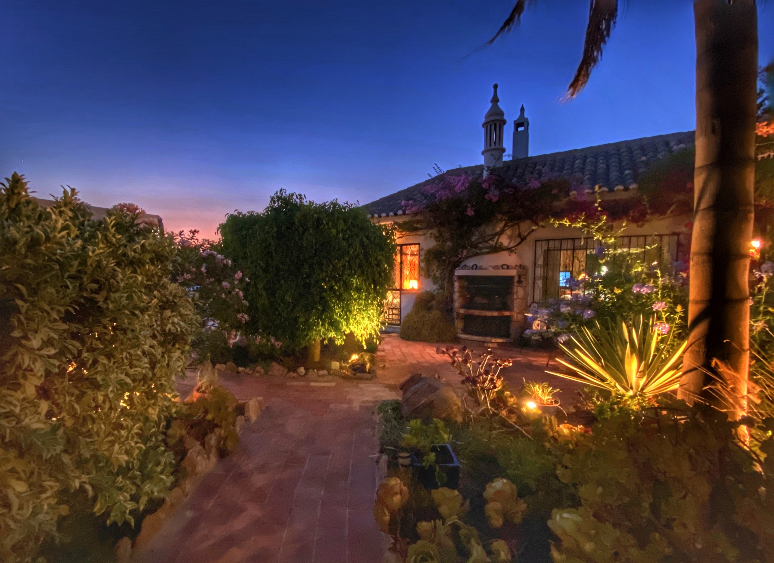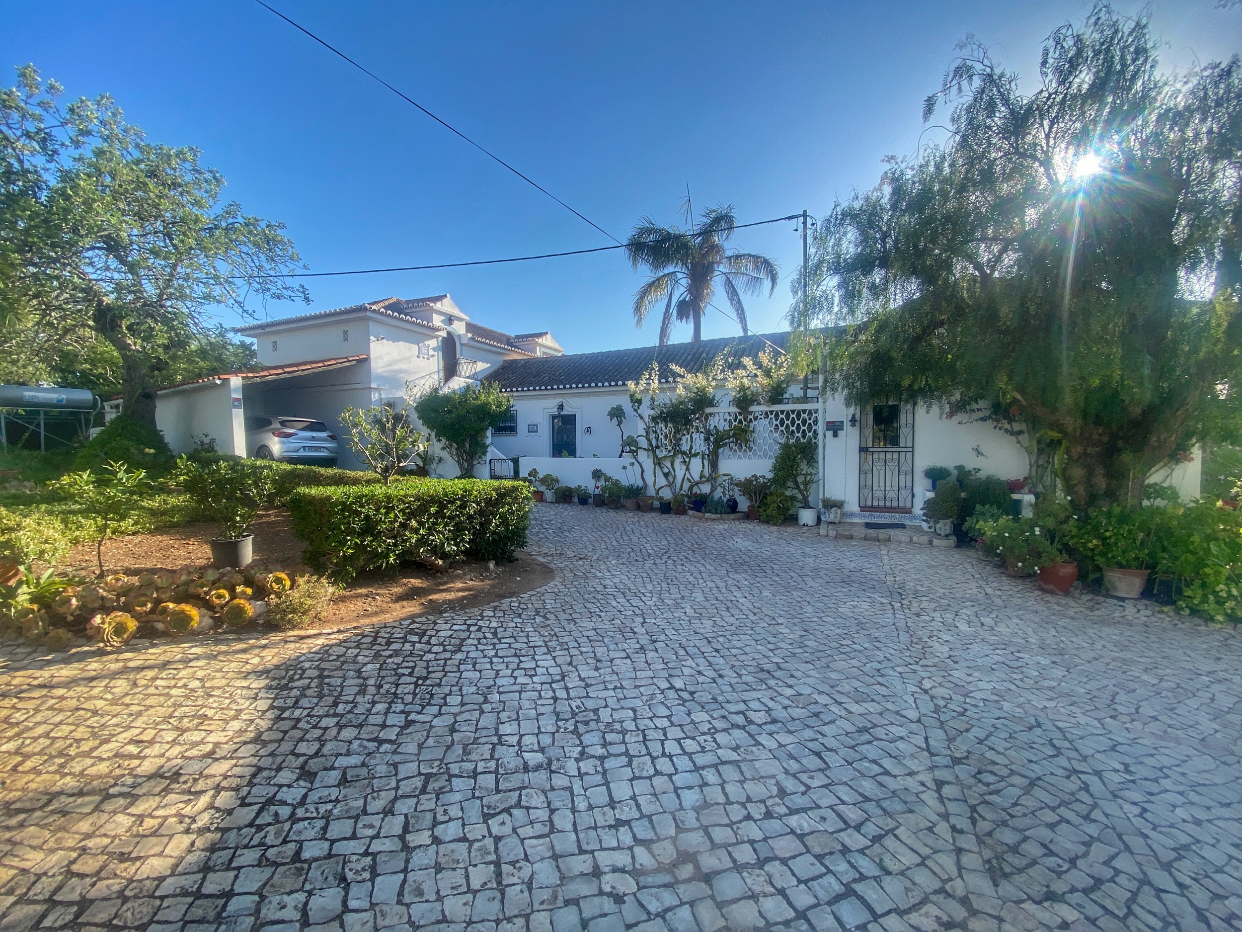 The Villa Colina is situated six miles west of Albufeira close to the famous village of Guia where you may sample the delicious chicken piri-piri from one of its many typical Algarvean restaurants. The villa is approached through the ‘Pineapple Palm’ entrance leading to the well-known Quinta da Saudade estate. It must be pointed out that this is open to the public but persons using Casa da Colina are not eligible to use the communal swimming pools unless invited. On the other hand, the tennis court is available at any time. The Restaurant, open six days a week during the summer months and serves a good variety of food. Weekly barbecues are held on a Saturday night in the summer, which are great fun for the family – persons using Casa da Colina Villa will be most welcome but booking is essential.