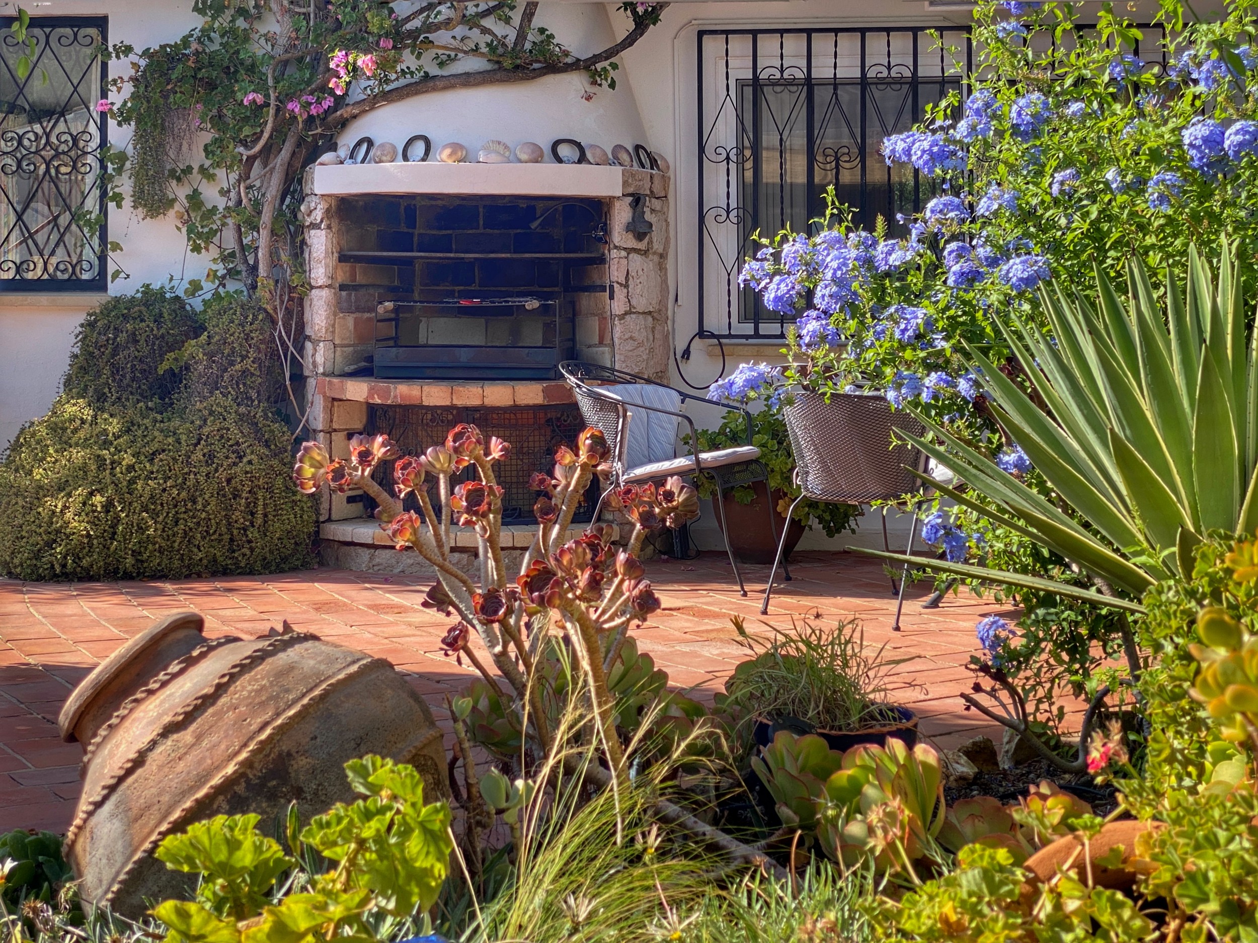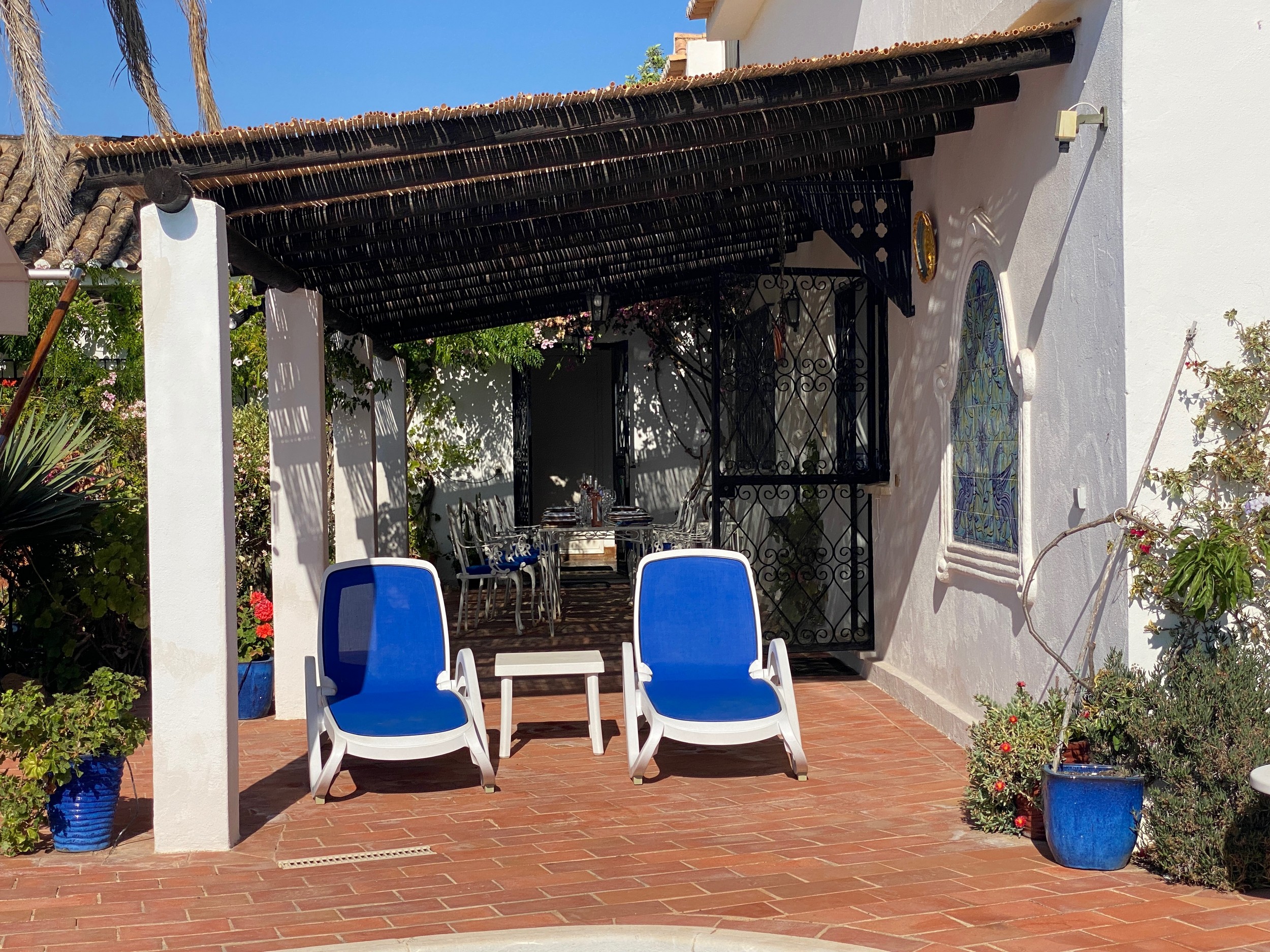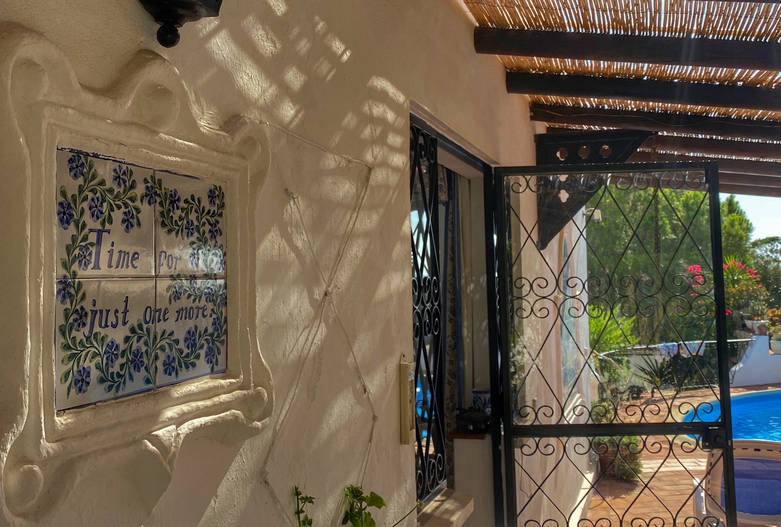 The house overlooks the swimming pool, which can be heated in the cooler months, and the courtyard garden is a delight at all times of year especially in the Spring when the freesias abound. There is a built-in gas barbecue on the terrace. The house has great charm being built in a semi-bungalow style with a pantile roof. The house offers total privacy and sits on its own land amounting to in excess of an acre. In the garden grow olive, carob, almond, pomegranate, fig trees and many other exotic treats. The addition of a petanque pitch is fun. There is also a table tennis table.