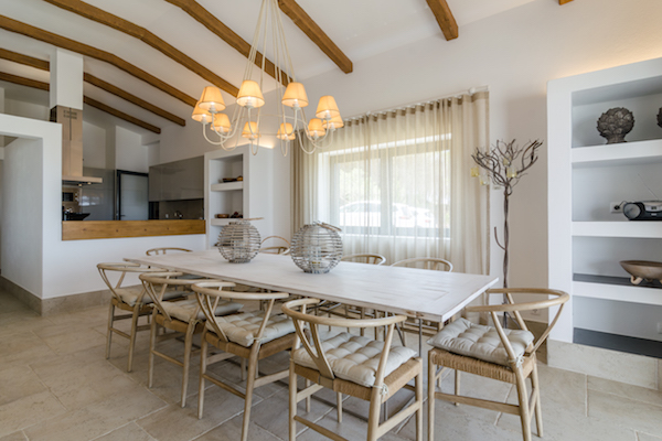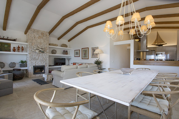 The sitting room is light and spacious and opens out onto a large terrace with superb views. There is a wood burning stove for the cooler months. There is a large satellite television and DVD player. The dining area has seating for ten people.