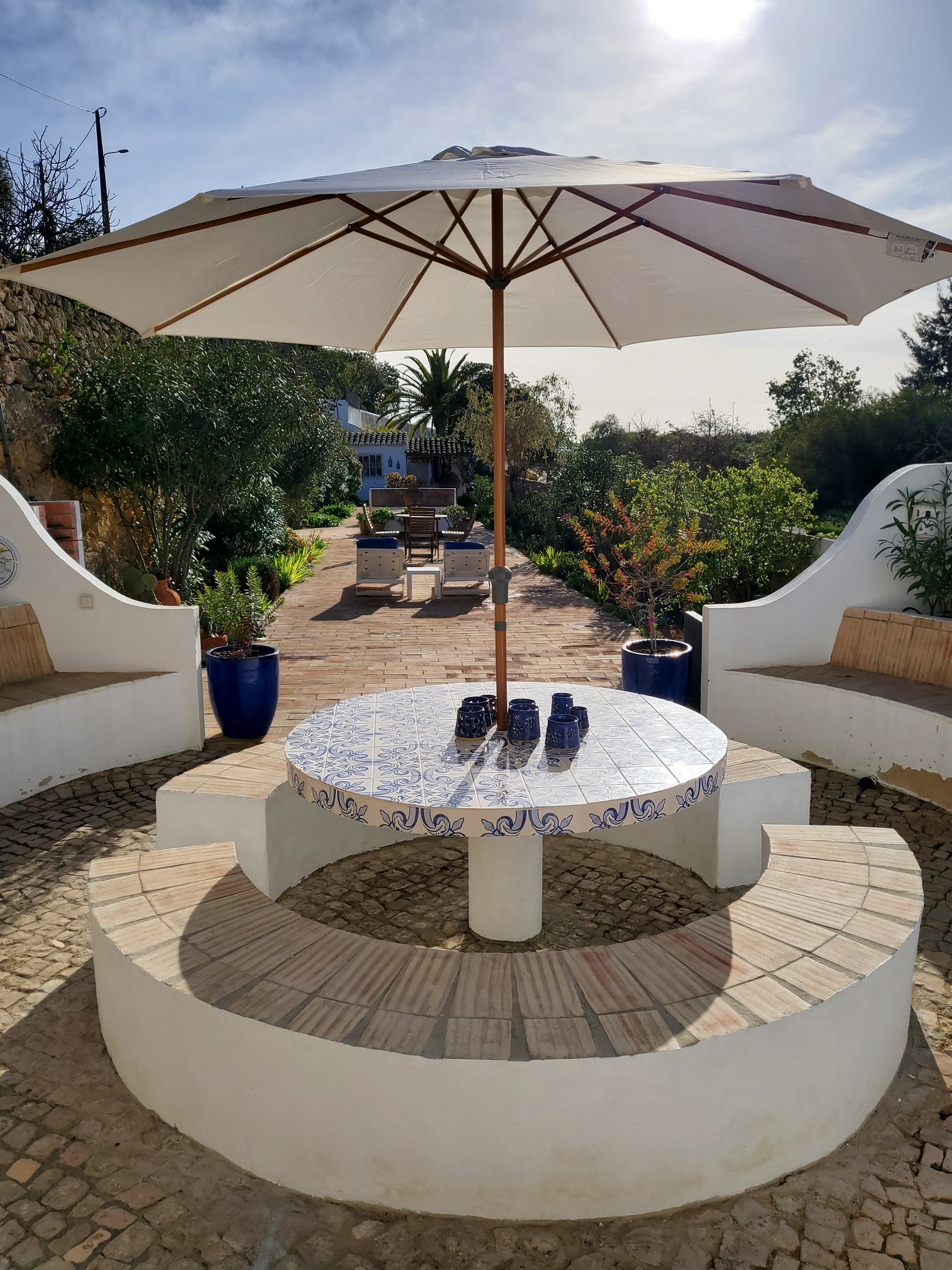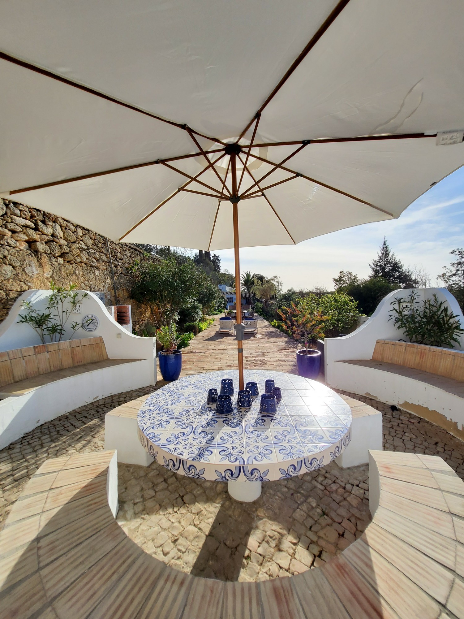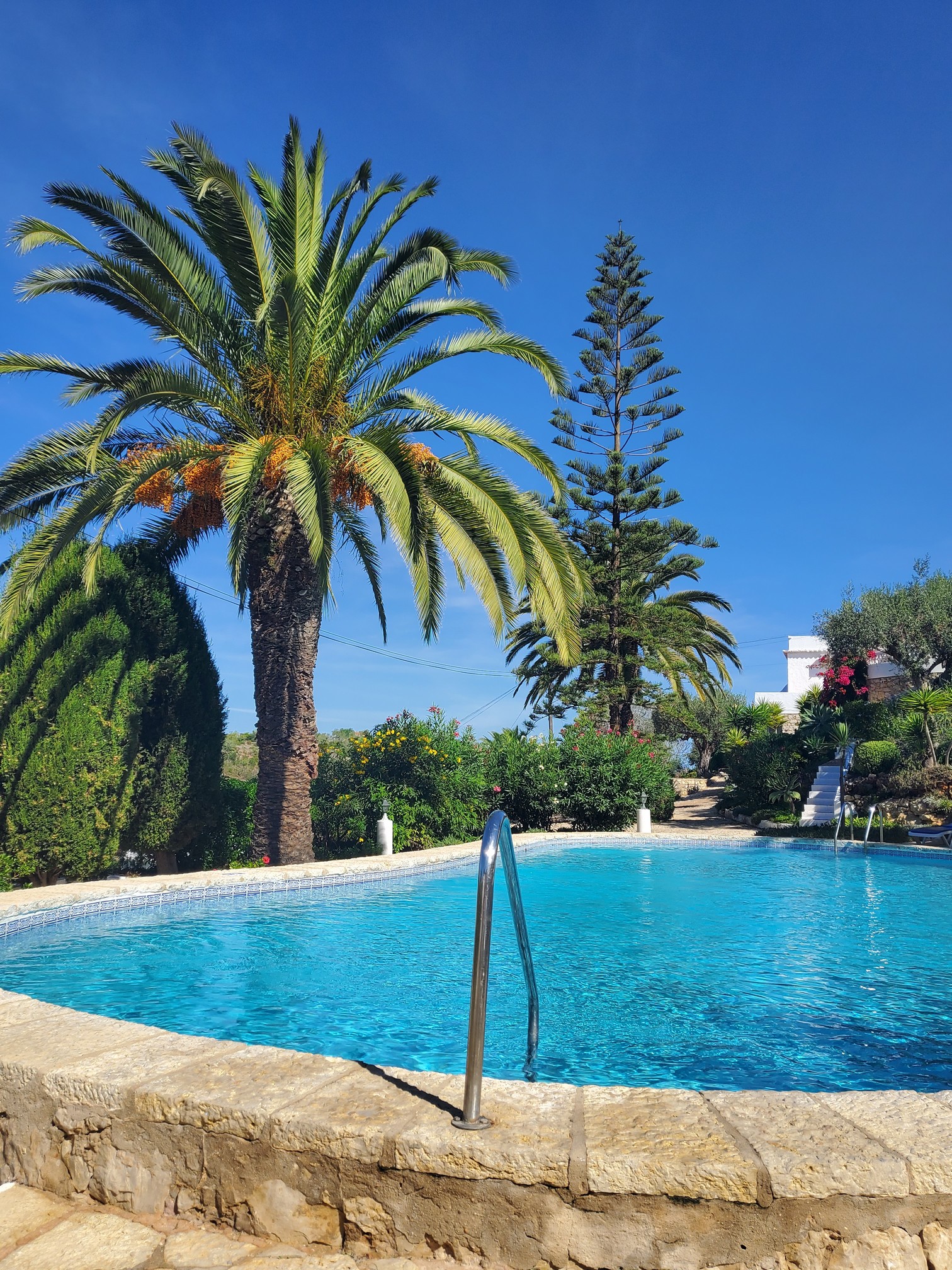 The Quinta nestles in the peaceful country setting of an old hillside farm estate. It is surrounded by orange, almond and olive trees and is about forty-five minutes drive from the Airport at Faro.