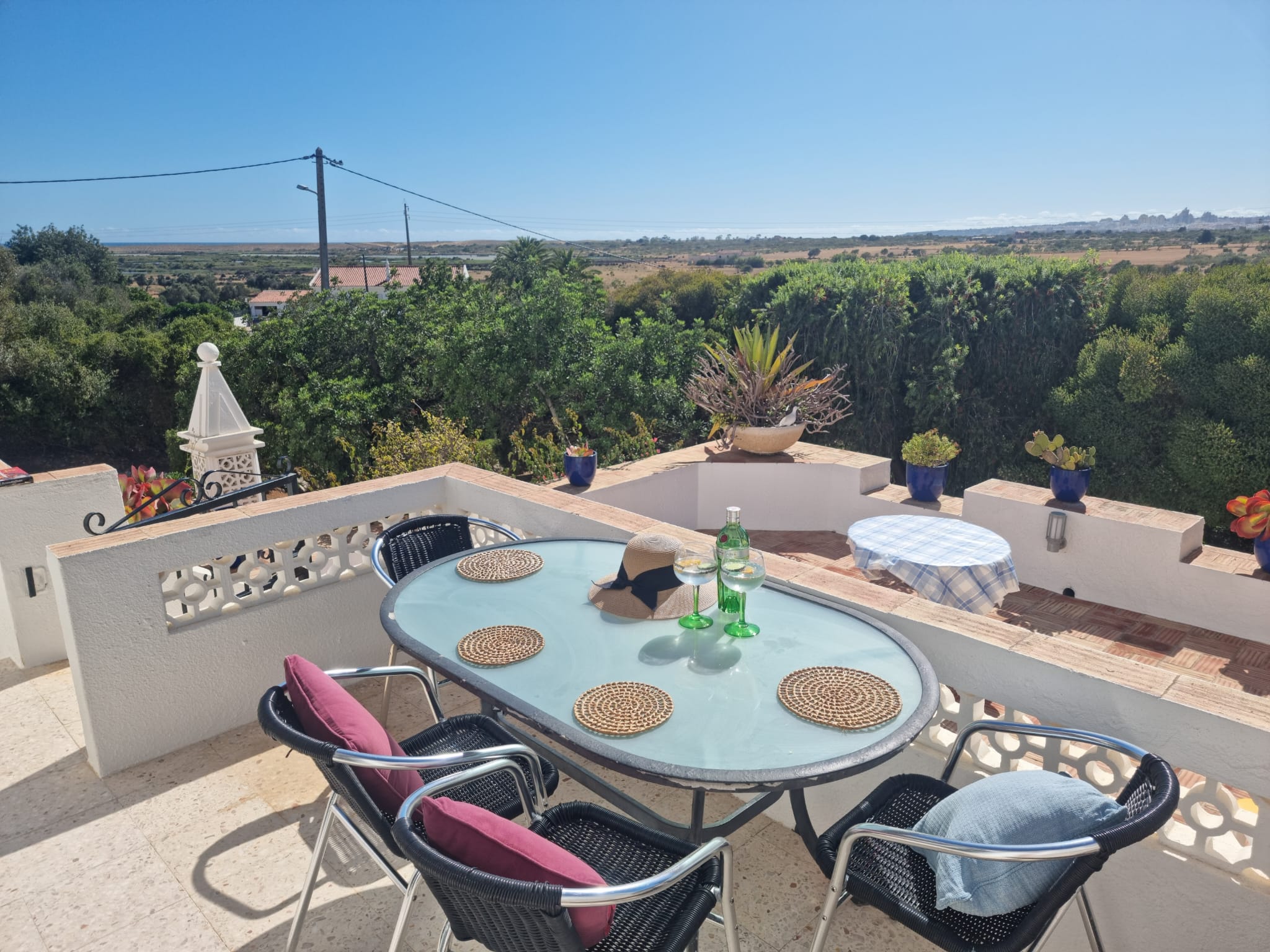 The (Casa Bela Vista) villa has a fantastic roof terrace. With a built-in barbecue and tiled dining table as well as sun loungers and a table and chairs, this is the place for lunch when you don’t want to interrupt your sun bathing. The view is magnificent, and was the reason the Villa was given its name. As the roof terrace is walled on three sides it is totally private and is, therefore, a haven of peace and tranquillity. There is a covered area to give some shade from the mid-day sun.