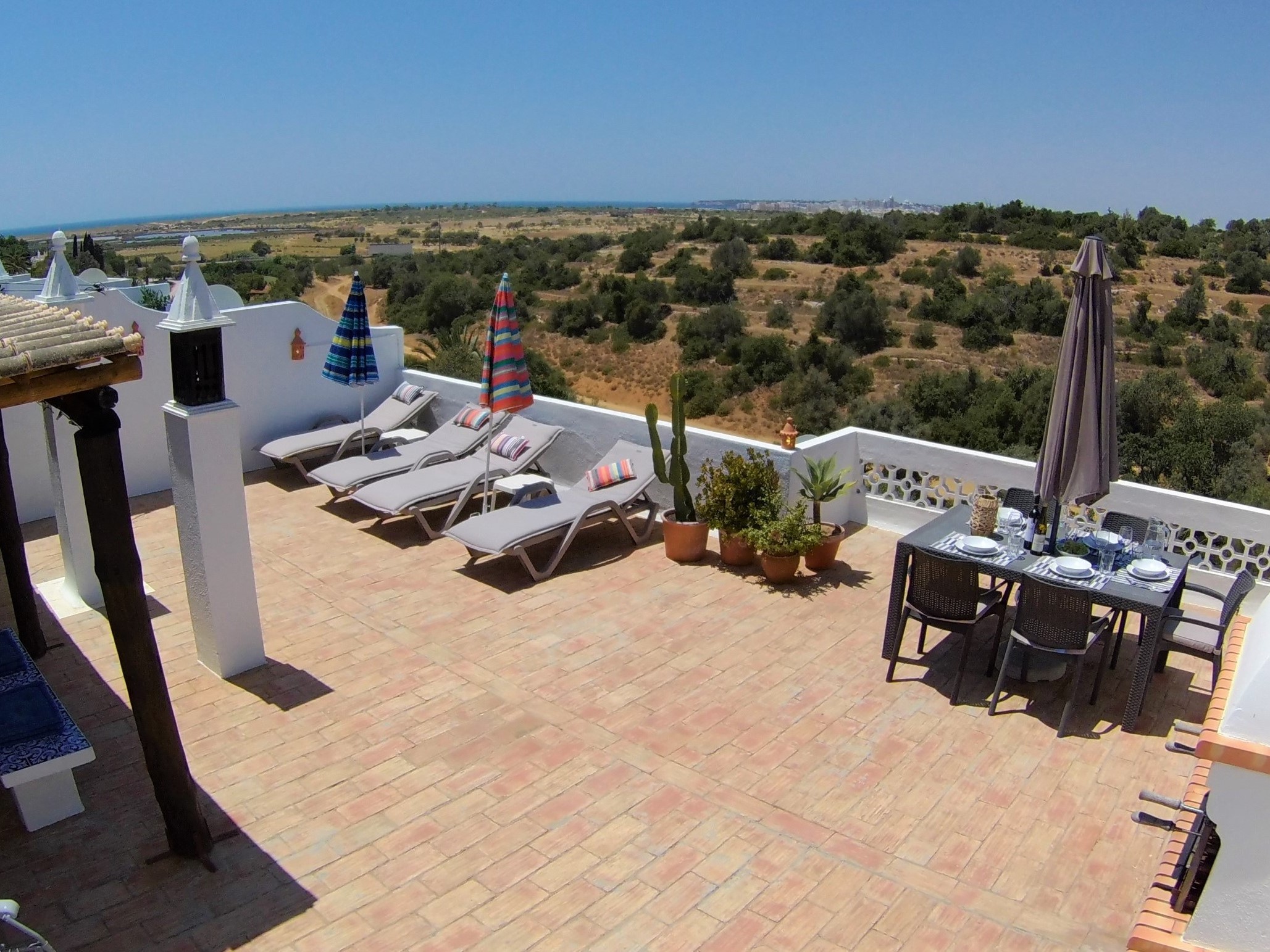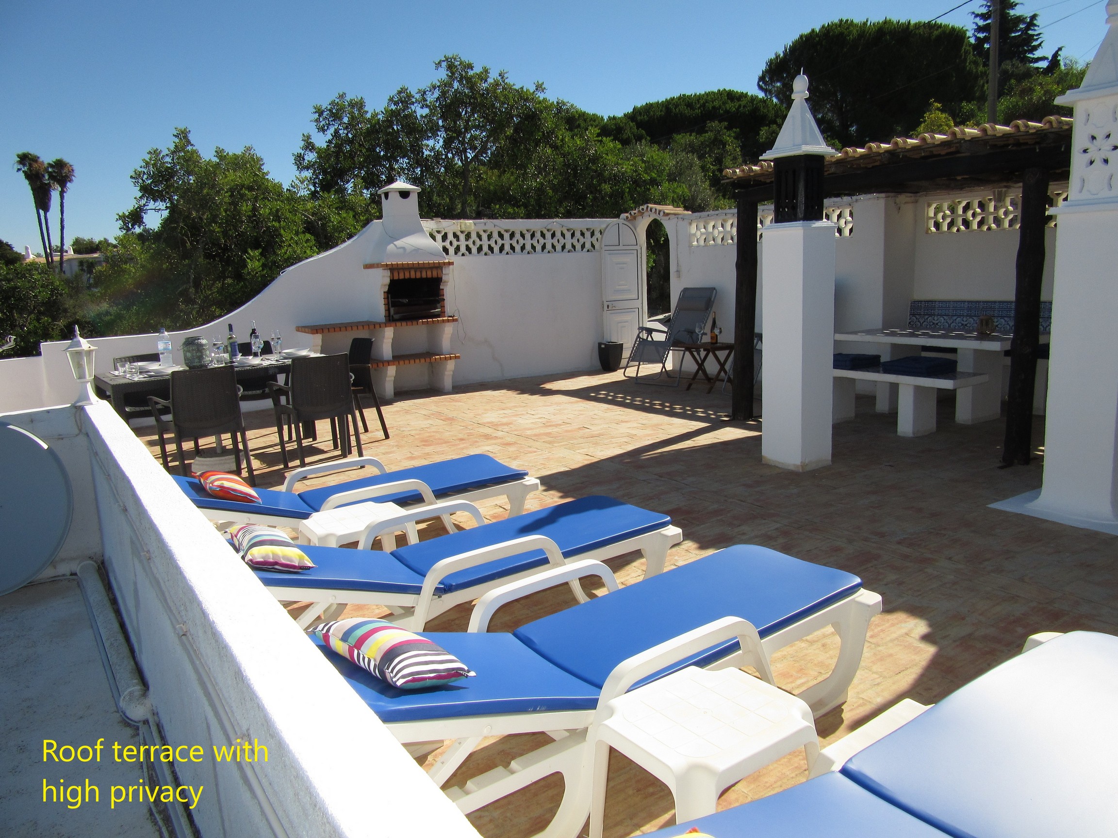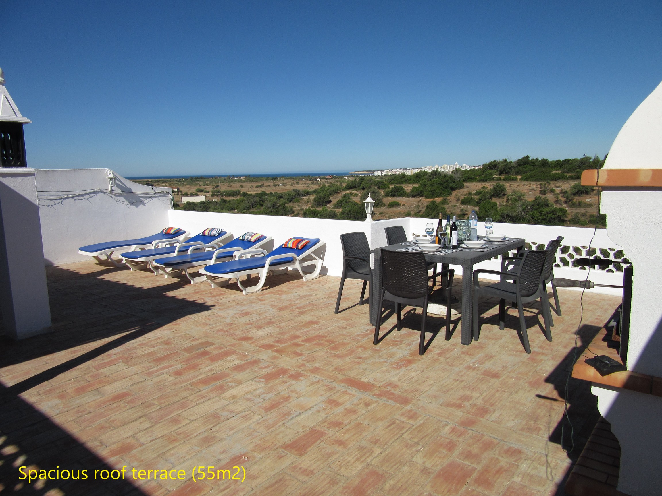 The villa 3B Quinta Da Saudade has a large roof terrace that has sun loungers, table and chairs. There is also a barbecue. There is a breakfast terrace built to the side of the villa.