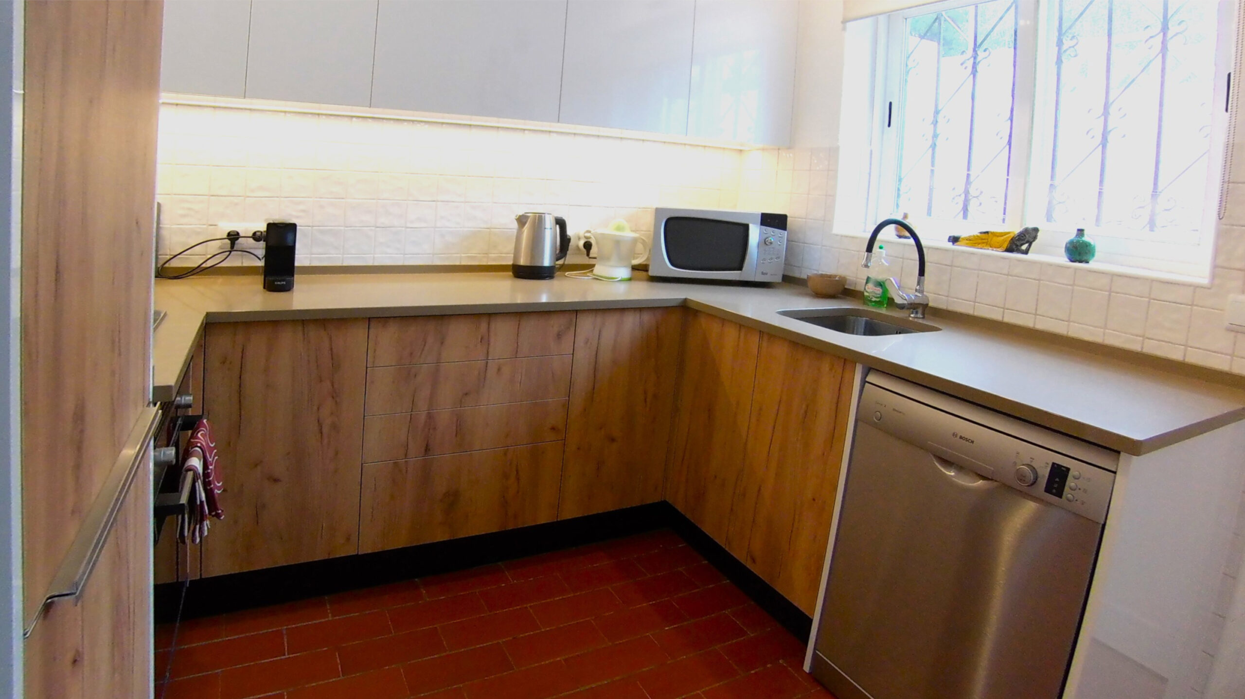 The kitchen is fully equipped and has a microwave, toaster, juicer, coffee maker, washing machine and a full range of saucepans, cutlery and crockery.