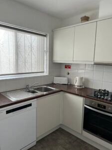 The sitting room/dining room has a wood-burning stove for winter months and a smart TV.  The bathroom is tiled throughout with a bath, shower, WC and heated towel rail