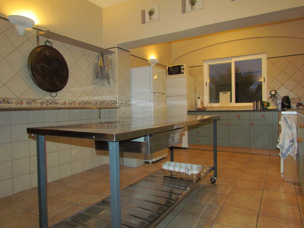 The villa has a huge fully-equipped kitchen which has two large fridges, oven, gas hob, dishwasher, microwave, juicer, toaster, bread maker etc. There is a separate laundry room with two washing machines.